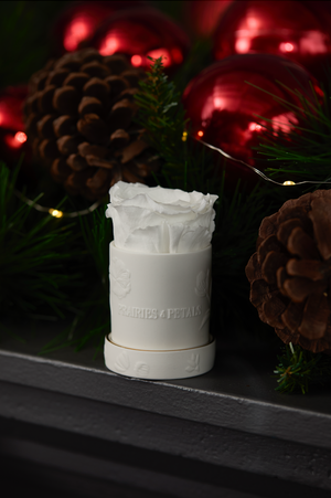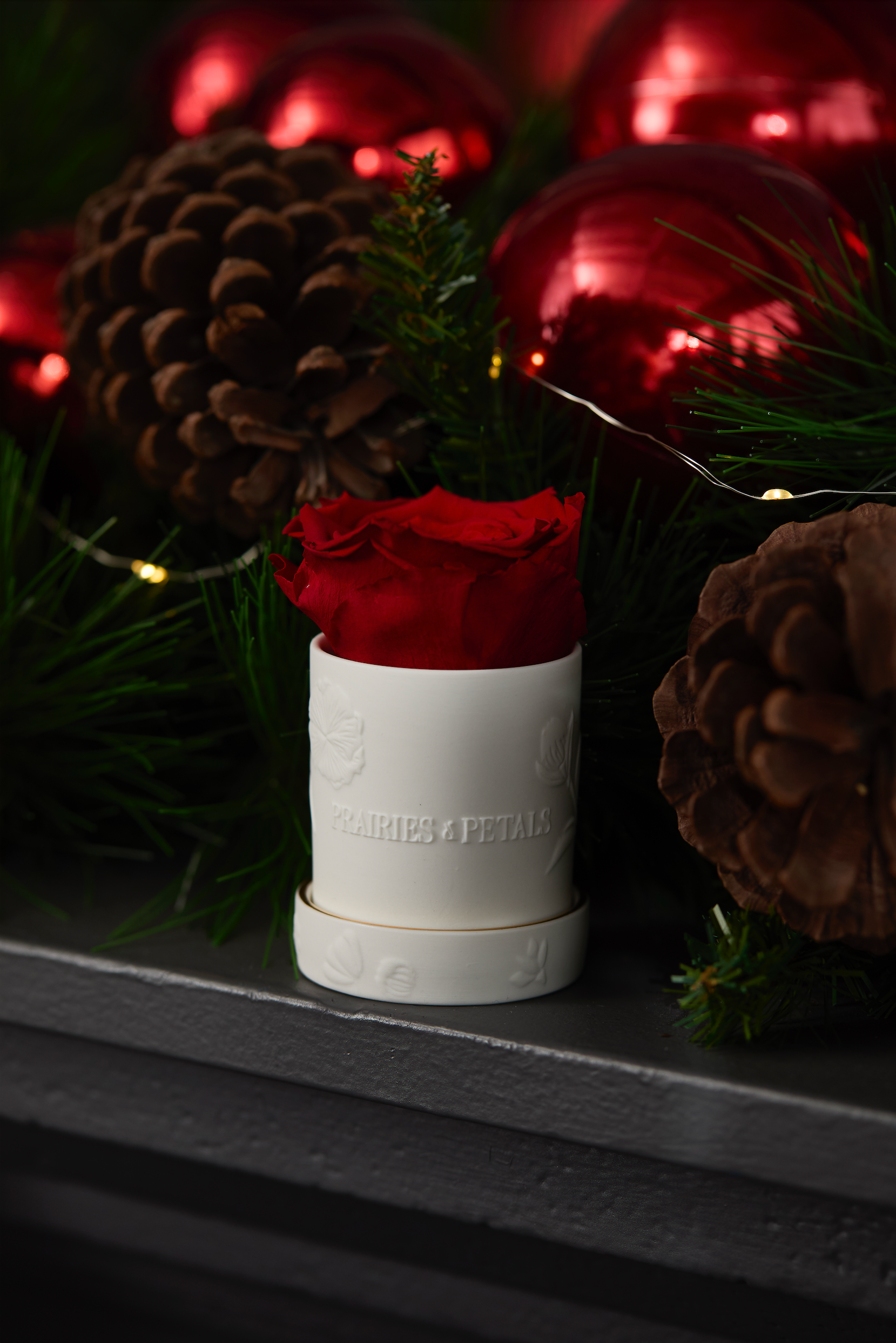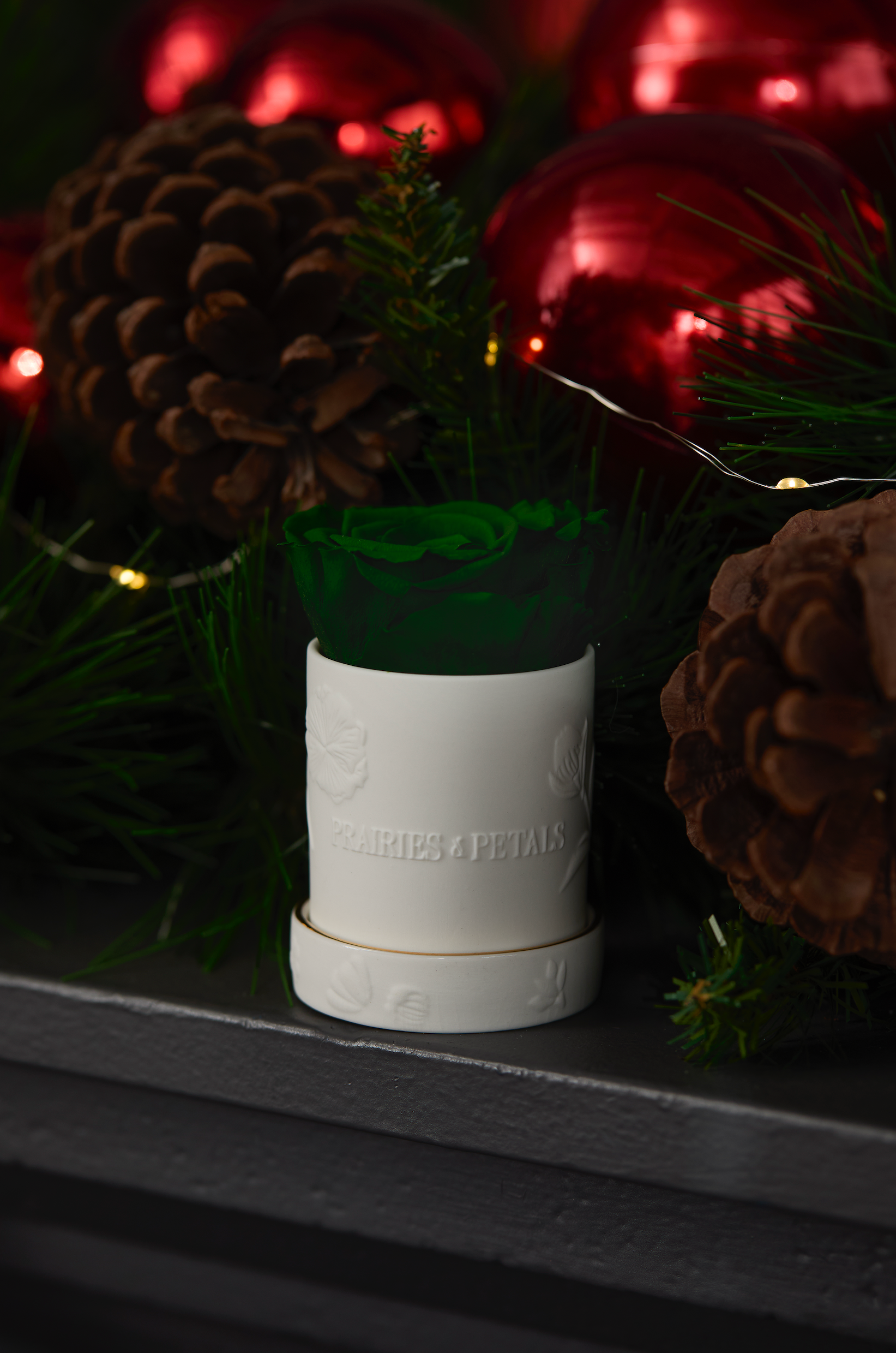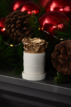 Accented with a radiant gold trim on the lid and delicate floral patterns adorning the base, this arrangement is both timeless and sophisticated. Whether as a token of love, appreciation, or celebration, our Ceramic Miniature Arrangement is a graceful keepsake that brings beauty and joy to any space.