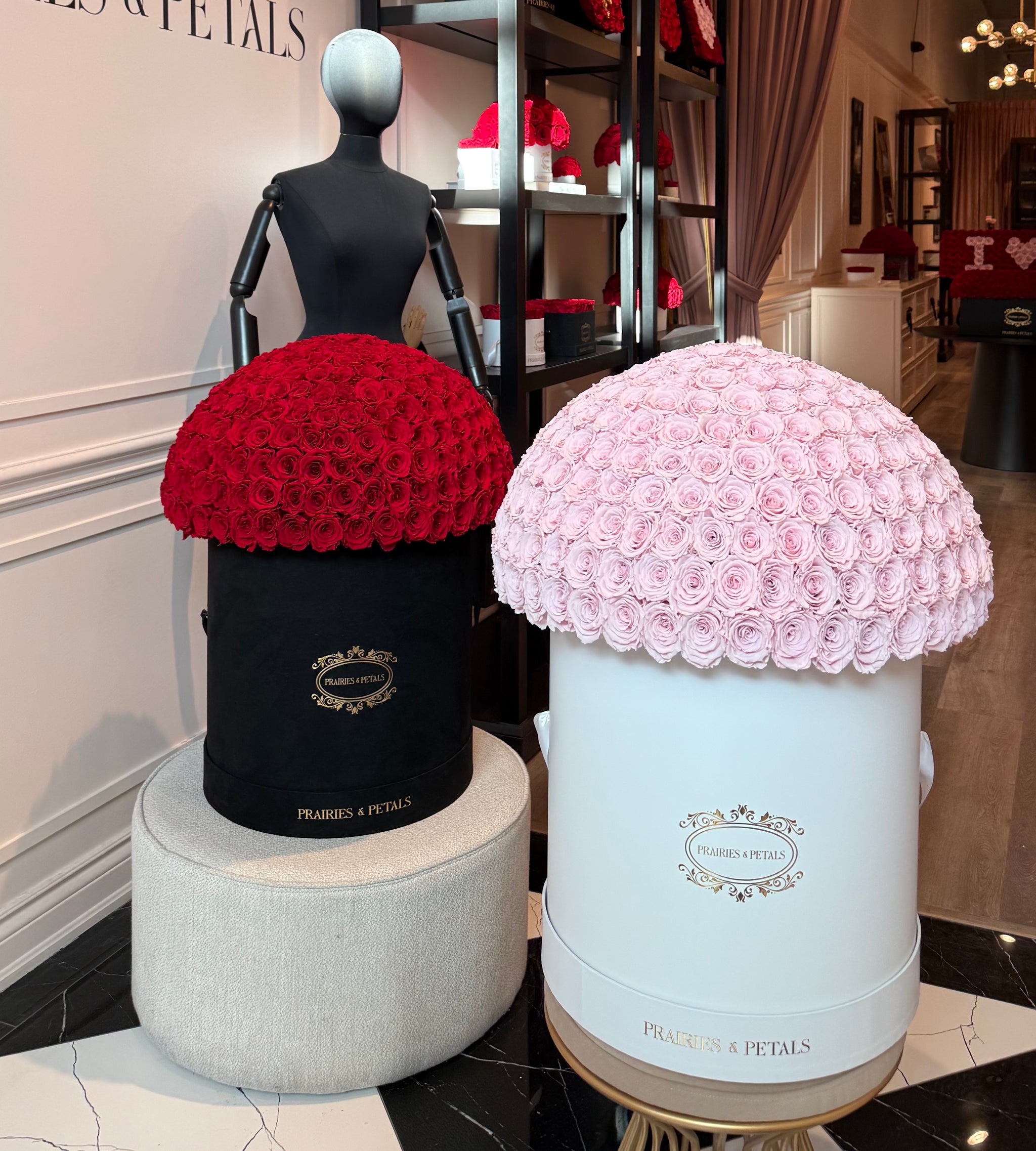 he XL Grand Fiorella is our largest arrangement ever created. Designed as a true statement piece, it features over three hundred roses arranged into a full, sculptural form that commands attention the moment it enters a space.